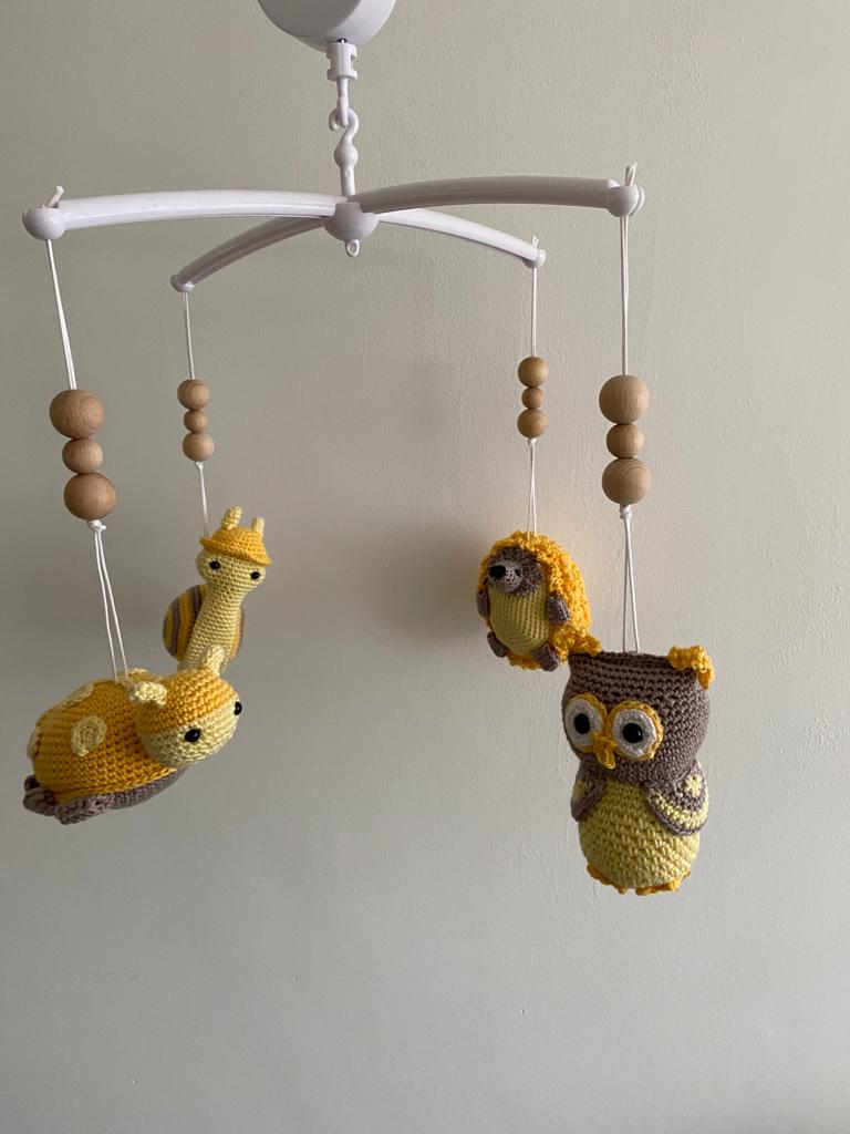 Deze mooie muziekmobiel met tuinbeestjes werkt rustgevend voor baby’s dankzij het lieve slaapliedje. Aan de mobiel hangen vier hangers met verschillende soorten tuinbeestjes die het heerlijk vinden om rondjes te vliegen om je baby te vermaken. Baby’s kijken graag naar de beweging van deze speeltjes, wat hun visuele ontwikkeling stimuleert. De muziekmobiel is geschikt vanaf de geboorte en eenvoudig te bevestigen aan het kinderbed of de box. Leuk om te geven voor een babyshower, kraamfeest of kraambezoek. Alle beestjes worden met de hand gemaakt met veel liefde.